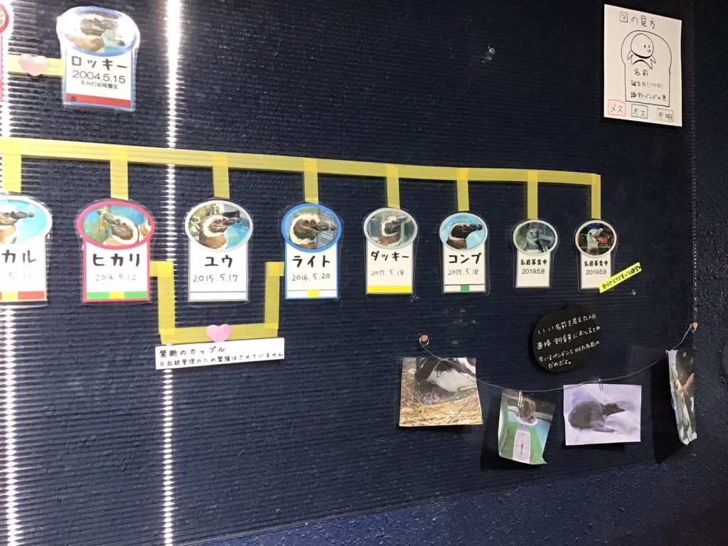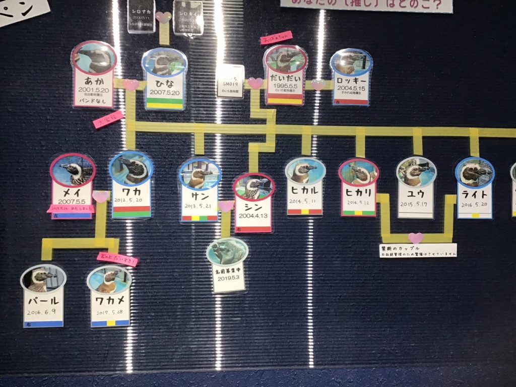 この水族館では、マゼランペンギンが飼育されている。2階の屋外プールにいるのだが、屋内にはペンギン家系図が展示されているため、見比べるとどの子がなんという名前なのかを把握できる。名前がわかるとより親しみやすい。まったり過ごせるいい場所だ。